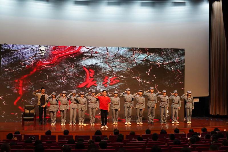 第二部分周佩欣老师带领大家回顾了长征历程,指出长征是中华民族伟大复兴历史进程中的巍峨丰碑,每一代人都要弘扬长征精神走好自己的长征路。随后由上政第24学生党支部带来情景剧《长征精神永放光芒》。