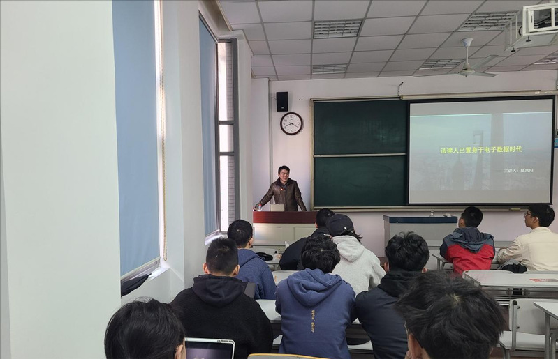 陆凤阳律师则从“侦查机关如何运用、收集、提取电子数据”以及“实务中电子数据存在的问题”两个部分向学生阐述。他表示,“好律师注意研究事实,伟大的律师会注意研究对手”,并结合“马加爵案”“劳荣枝案”等案例,结合视频加以分析,供学生更好地了解学习。