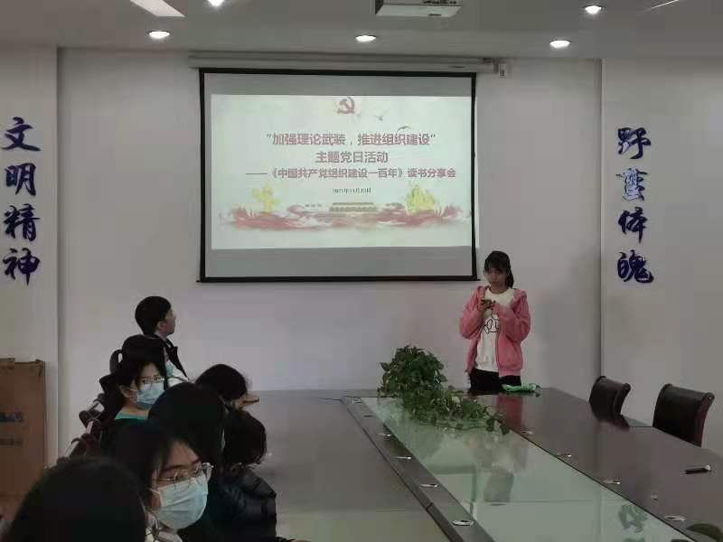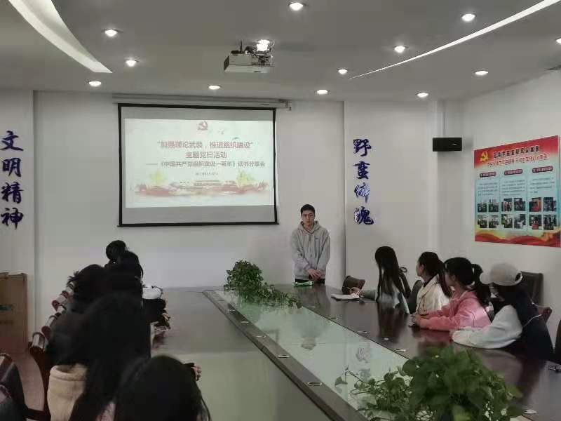 2021年11月12日中午,上政第24学生党支部于主教505A开展了以加强理论武装,推进组织建设为主题的党日活动。本次活动的主要内容为《中国共产党组织建设一百周年》读书分享,由上政第24学生党支部学生党员钱泓潮主持,党支部书记程冬禾及全体学生党员出席会议。