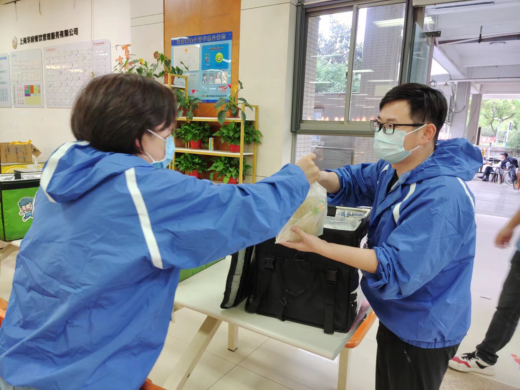 在我校封闭管理期间,学校与同学快跑平台合作开启“智能餐厅”,方便在校学生通过自主选择、线上下单,做到零接触获得校内餐厅美食,有效避免用餐时段餐厅人员聚集。为了提高送餐效率、解决送前分装记录问题,警务学院院长蔡一军老师带领警务学院全体在校值班老师组团成为“上政送餐天团警务分团”。上午在线上课堂刚见过面的老师,下午就化身“外卖小哥”送餐到同学们面前。