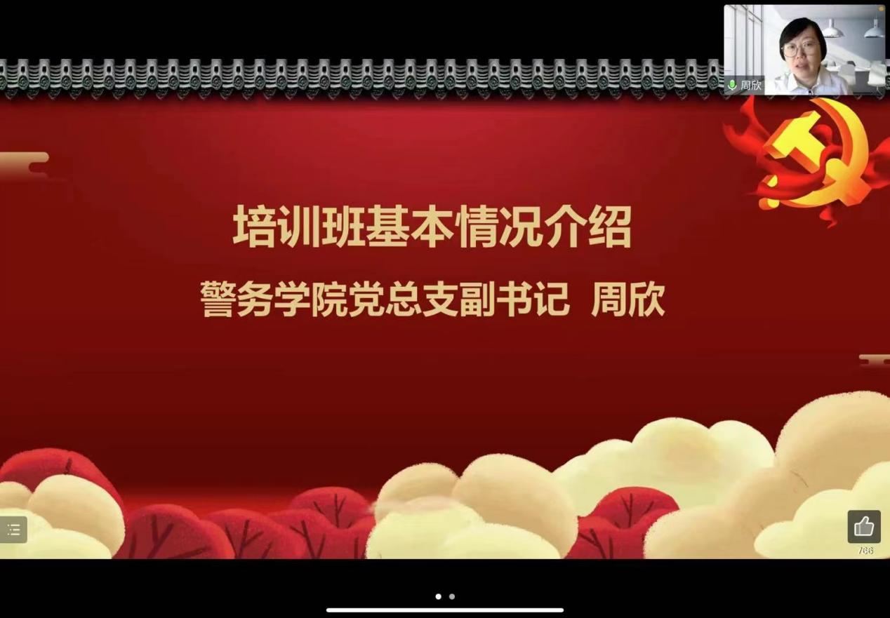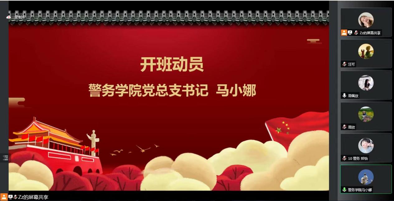 警务学院党总支书记马小娜老师作开班动员她希望各位学员认真完成学习任务能够学有所成,成为一名名副其实的中国共产党员践行青年党员的使命担当。