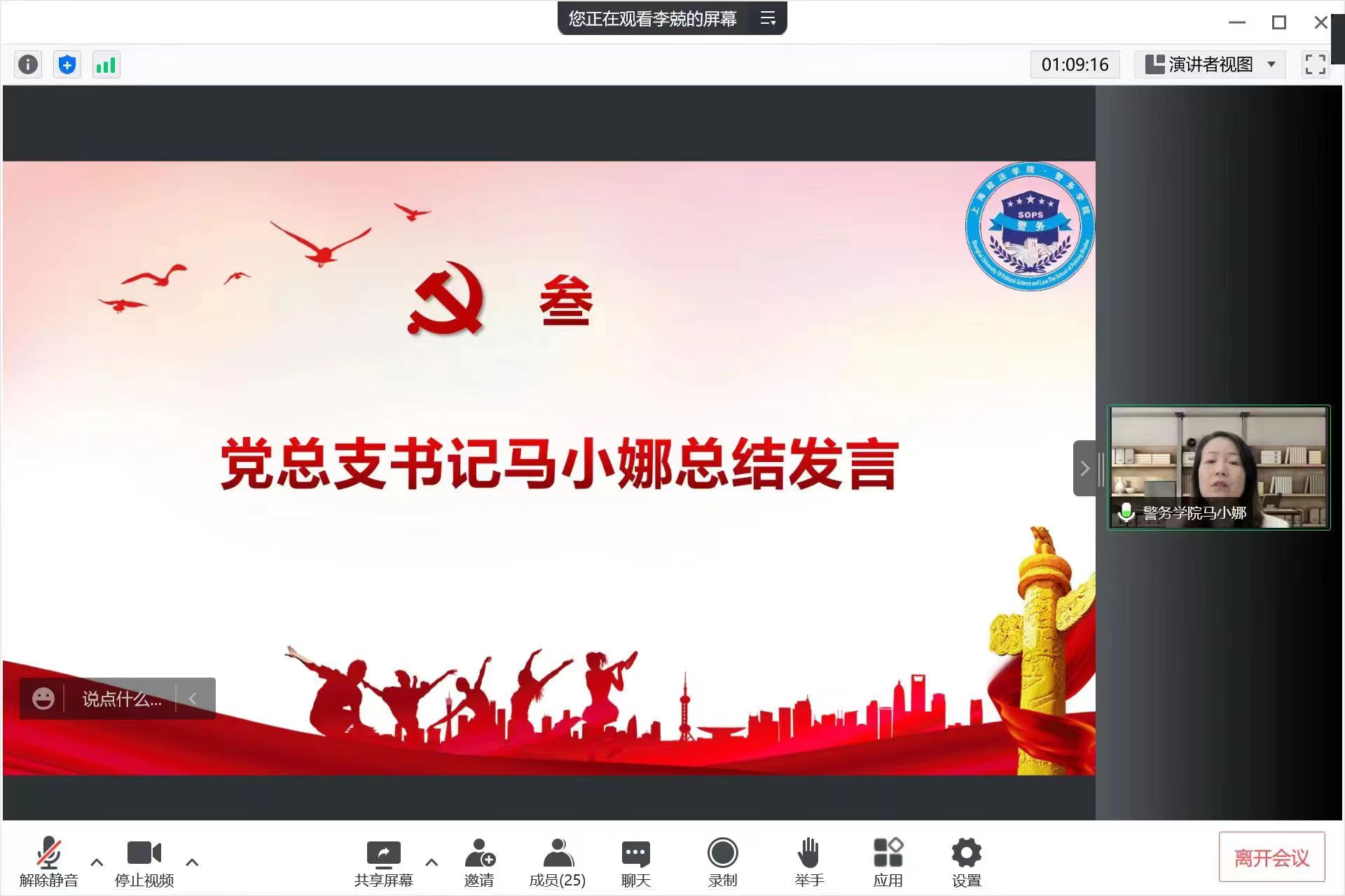 为进一步坚定毕业生党员的入党初心,激励毕业生党员步入新阶段后继续发挥先锋模范作用,2022年6月11日下午,警务学院党总支通过腾讯会议形式举办了以“永葆初心跟党走,勇担使命创未来”为主题的毕业生党员离校前教育活动。警务学院党总支书记马小娜、党总支副书记周欣、上政第24学生党支部书记王罗超、专职组织员周佩欣、辅导员程冬禾以及19名毕业生党员出席会议。会议由周佩欣主持。