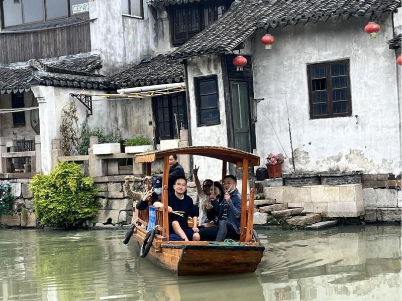 在枫泾古镇,江南水乡古镇的繁华千篇一律,不同的是警务学院教职工看上海、品上海、爱上海的内核。教职工们在水乡泛舟,相对而坐,畅谈学院的发展与规划。嘉兴以东30公里,警务学院致敬红船精神。