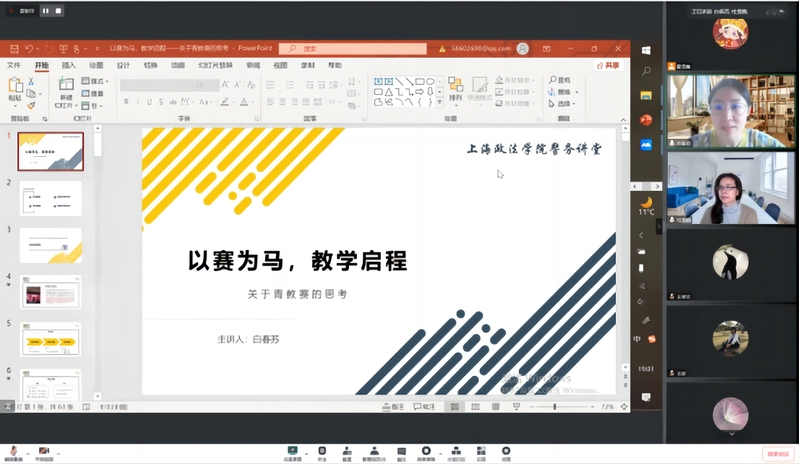 第十一届浙江省高校青年教师教学技能大赛特等奖、第一届全国高校教师教学创新大赛一等奖、2020年浙江省高校教育技术成果评比一等奖获得者白春苏副教授从赛制、赛程、评分标准等方面介绍了青教赛的概况。她向大家展示了自己参赛作品“文学渊源关系的类型——以《在地体车站》为例”,结合自身比赛经验和参赛心得,围绕参赛选题、教学设计、教学方法、教学过程等内容进行了分享,强调了参赛教师对课程整体性的把握,关注高阶性、创新性和挑战度。她认为设计思路要将新技术、跨学科思想、课程思政等融入课程设计中,并阐述了青教赛与教师个人发展的紧密联结。