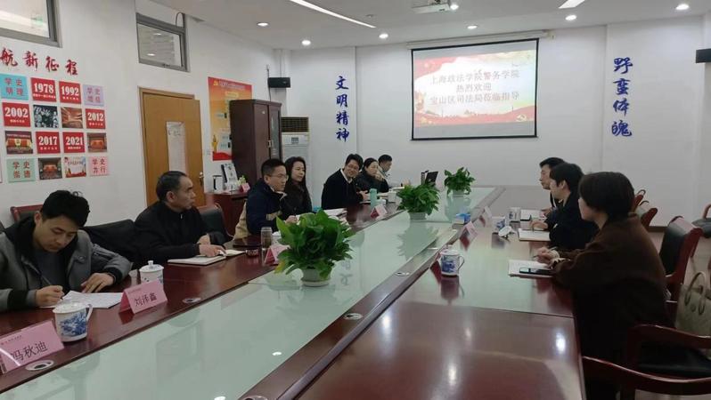 2月23日下午,宝山区司法局副局长陈燕、矫正科科长马敏华、教育帮扶科副科长徐琼毓来到警务学院指导交流,于主教505A会议室召开座谈会,警务学院院长蔡一军、副院长杜雪晶、警务学院客座教授张晶、监狱学全体教研室教师、社区矫正全体教师参与本次会议。