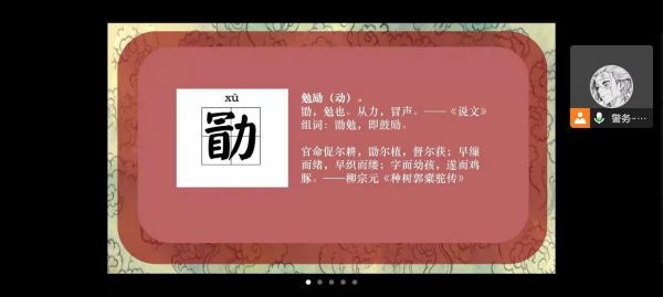 活动伊始,程诗媛向大家讲解“雷锋精神长赫奕,传承奉献需勖行”中的“勖”字的含义。她讲到勖是勉的意思,勉就是努力、力量不够而尽力做的意思,而主题的后半句“传承奉献需勖行”就是说传承雷锋精神需要我们去努力实现。