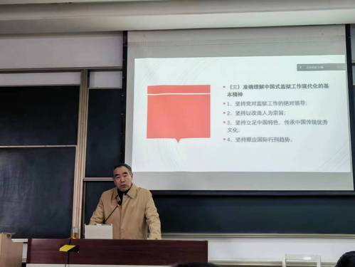 讲座第二部分,张晶教授就二十大报告对中国式现代化的外延边界进行了详细讲解,强调中国式现代化打破了西方现代化的迷思,代表人类文明进步的发展方向,是可复制、借鉴、推广的现代化,是开放包容的现代化。同时,张晶教授从我国不断吸收国外监狱理念方法、创造性推动劳动改造制度改革等角度,对如何将我国监狱建设成最先进、最文明的监狱、体现社会主义监狱的优越性、体现中国特色社会主义的文明性展开了思考与解析。