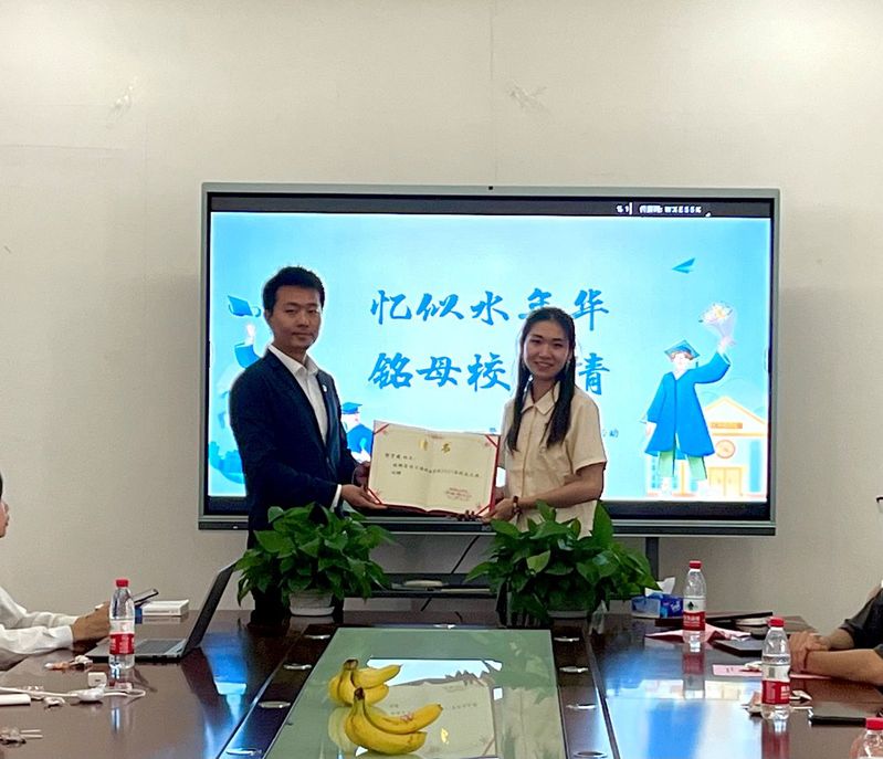 其次,校友会选聘仪式拉开序幕,选聘优秀毕业生们为“校友大使“并依次上台领取聘书。仪式之后毕业生们踊跃发言,积极献策,共同探讨了毕业生所面临的共性问题,反映了学习环境和教学管理等方面的问题,并结合自己的实践经验对学院的教育教学工作提出了合理的建议。