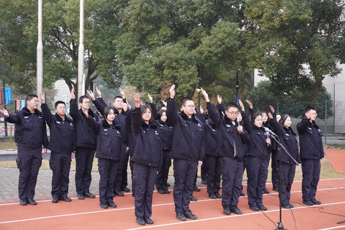 上午7时20分,升旗仪式正式开始。随着雄壮激昂的《义勇军进行曲》,观礼师生集体肃立,齐唱国歌,校国旗护卫队成员神情庄严地护送五星红旗冉冉升起。