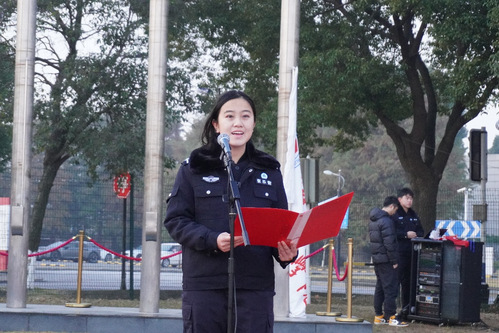 仪式第三项,张乐怡同学由回顾先辈为法治完善所作的斗争切入,通过分享时政以及警务学院的特色活动,强调身为上政学子,应弘扬法治精神,做到与“宪”同行,“宪”在幸福。