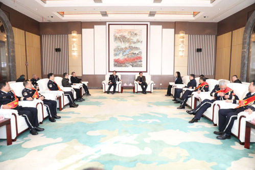 典礼开始前,校党委书记葛卫华、党委副书记、校长刘晓红、党委副书记、副校长高志刚在上合基地贵宾室会见了市监狱局领导和退休老领导、荣休干警。