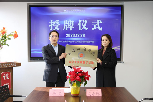 在会议上,礼法律所主任李旻律师介绍了律所的现状和未来发展规划等,马小娜介绍了警务学院的办学情况和学生培养情况。双方就未来在专业合作、人才培养、活动举办等方面的深度合作进行了探讨,并最终达成了进行全面合作的意向,进行了全面合作签约与大学生实践教学基地授牌仪式。