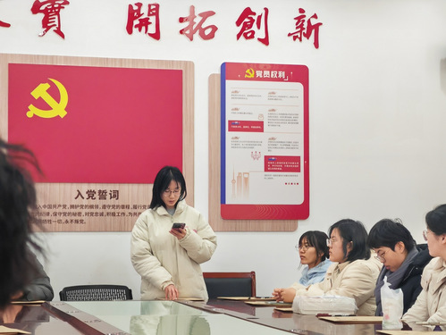 最后,刘震涛详细介绍了党员的发展流程,强调了入党积极分子教育培养的工作内容与发展程序。刘震涛表示,成为党员绝不是易事。从群众中来,到群众中去。身为入党积极分子,更要充分发挥自身表率作用,站稳人民立场,坚定理想信念,用实际行动诠释新时代中国青年的使命与担当。