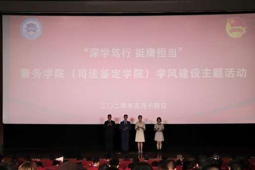 2024年5月14日下午,“深学笃行 挺膺担当”警务学院(司法鉴定学院)学风建设主题活动于我校天马讲堂顺利举行。校学工部、武装部部长丁永建、校计财处处长叶玮、校教务处副处长陈风光、校团委副书记胡飞宇、警务学院院长蔡一军、警务学院党总支书记马小娜、警务学院副院长杜雪晶、警务学院党总支副书记周欣及警务学院全体师生、浙江警官职业学院师生代表出席本次活动。
