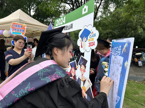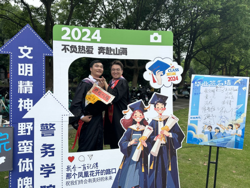 咔嚓!警务学院毕业生和老师们一起用相机定格美好瞬间。在签名墙上写下自己成长的挫折,奋斗的喜悦。在警务的时光有欢笑也有泪水,有收获也有期待。