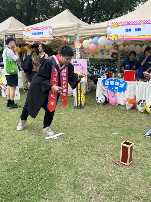相识于初秋,临行于盛夏,炽热将太阳送到北回归线,将序幕铺开在夏日的终章。投壶赠礼,普法问答,拍照打卡,毕业生们集聚警show前程毕业集市摊位,一同为青春留下最美好的回忆。