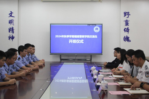 9月24日下午,警务学院于主教505A会议室为福建警察学院交流生隆重举行了2024年秋季学期交流生开班仪式。本次开班仪式由福建警察学院刑罚执行系矫正管理教研室主任高杨武、福建警察学院教学秘书邓杰、警务学院副院长杜雪晶、警务学院辅导员程冬禾出席,福建警察学院全体交流生和警务学院福警班导生参与。此次仪式由程冬禾主持。