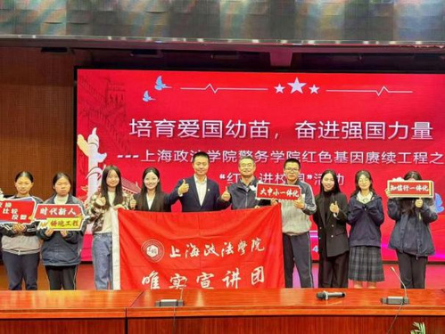 11月14日下午,警“悟”红色先锋队志愿者在上政第24 学生党支部书记刘震涛的带领下,共同前往青浦二中,开展红色基因赓续工程三红行动之“红心进校园”活动的红色基因之旅。