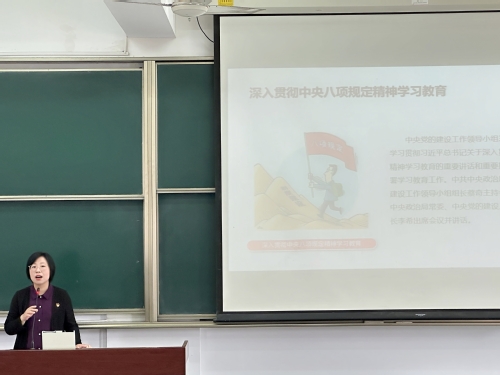 2025年4 月 8 日,上政第 24 学生党支部在主教 502B 开展了《以中央八项规定为切口 锤炼新时代学生党性修养》专题党课学习。由党支部书记周洁讲授。