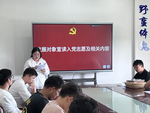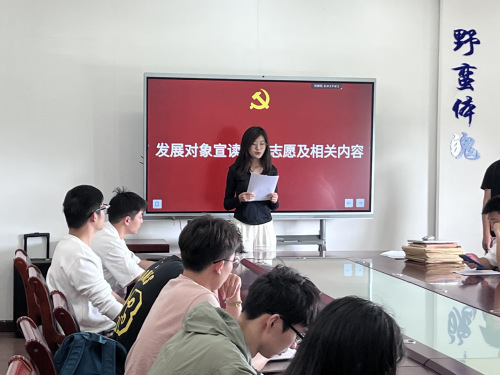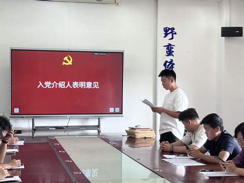 10位发展对象依次向大会汇报个人对党的认识、入党动机,同时讲述了自身主要优缺点及今后努力方向,表达了加入中国共产党的强烈愿望和为人民服务的坚定信念。入党介绍人同志分别就各位发展对象的思想动态、学习工作表现等情况进行介绍,并且对其能否入党成为预备党员表明意见。支部组织委员代表支部向大会报告了各发展对象政治审查和意见征求结果。