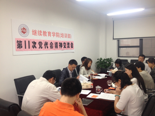 按照学校党委关于《关于学习贯彻上海市第十一次党代会精神的通知》的要求,继续教育学院(培训部)于2017年5月19日和24日在普陀校区B301室,分别组织召开了上海市第十一次党代会精神传达和学习交流专题会。