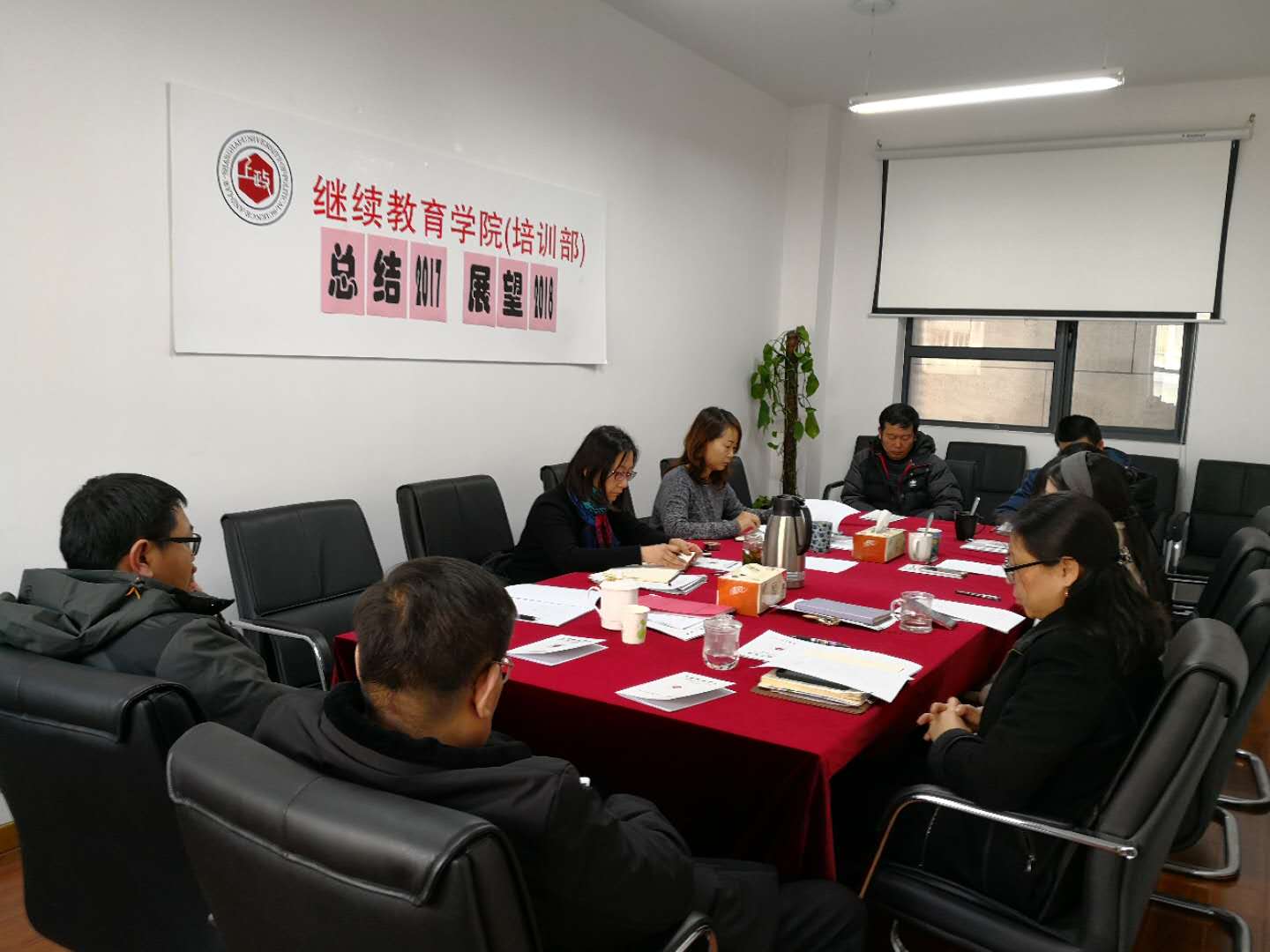2018年1月10日,继续教育学院(培训部)在普陀校区B301召开了主题为“总结2017 展望2018”的年终总结会。会议由继续教育学院(培训部)副院长程秀玲主持,全体教职工参加了会议。