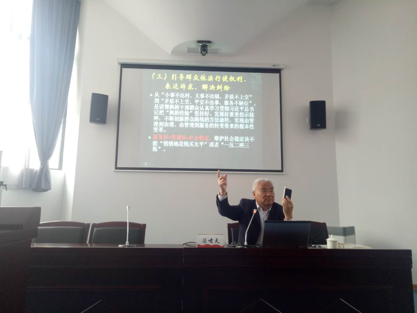 本次培训班首先由新利18官方客服教授汤啸天为学员做《维护社会稳定的治国之本——新常态下信访维稳工作》专题讲座,学员与老师积极交流互动,课堂气氛活跃。(邢焕撰稿 冉玉莹摄影)