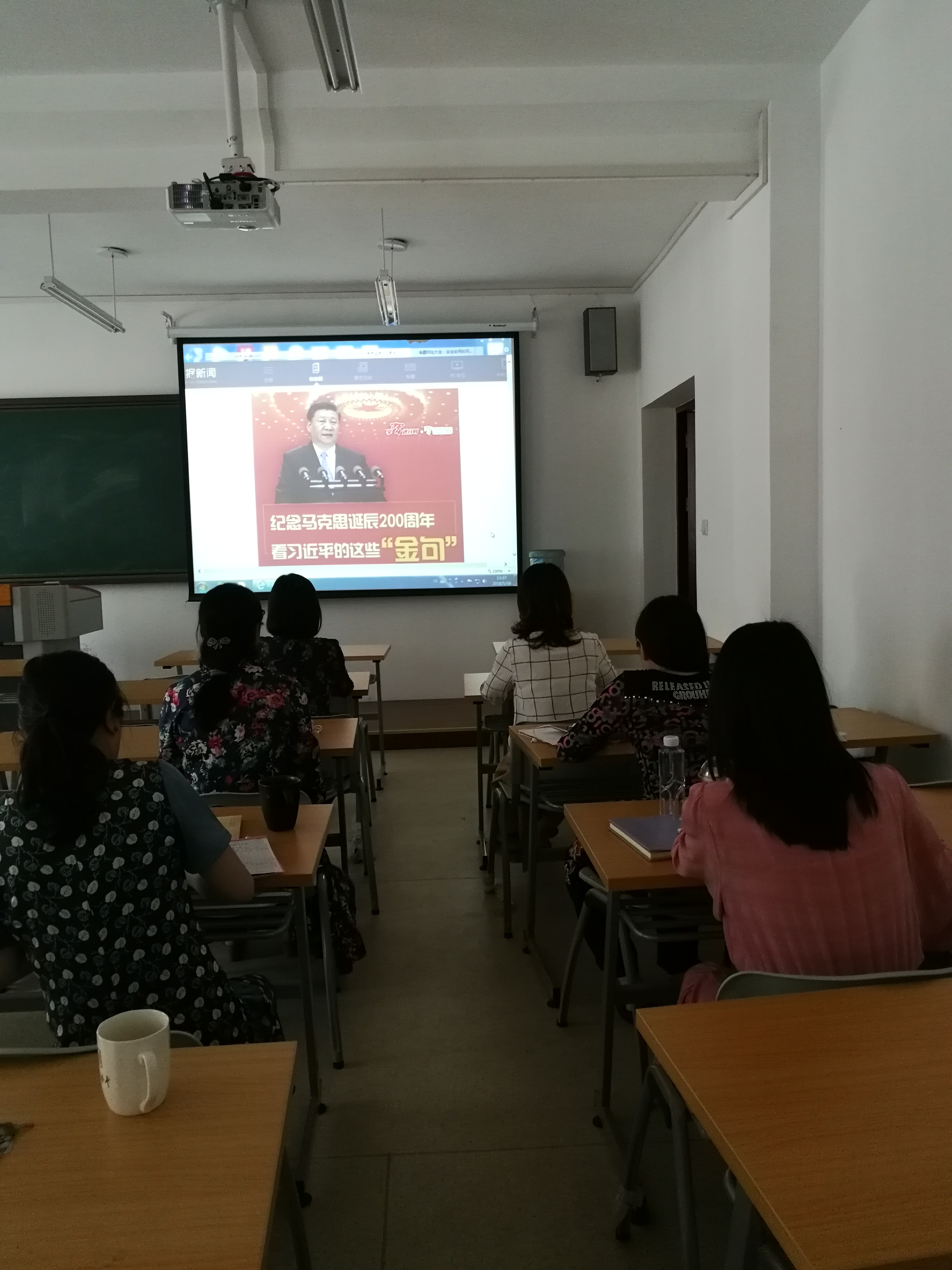 5月16日下午,继续教育学院(培训部)党支部组织全体党员学习《习近平总书记在纪念马克思诞辰200周年大会上的重要讲话》并观看《给90后讲讲马克思》视频。