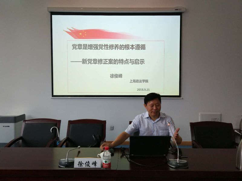 仪式后,开班第一课由我校徐俊峰教授为学员讲授《党章是增强党性修养的根本遵循——新党章修正案的特点与启示》,激励学员不忘初心、砥砺前行。(邢焕撰稿 冉玉莹摄影)