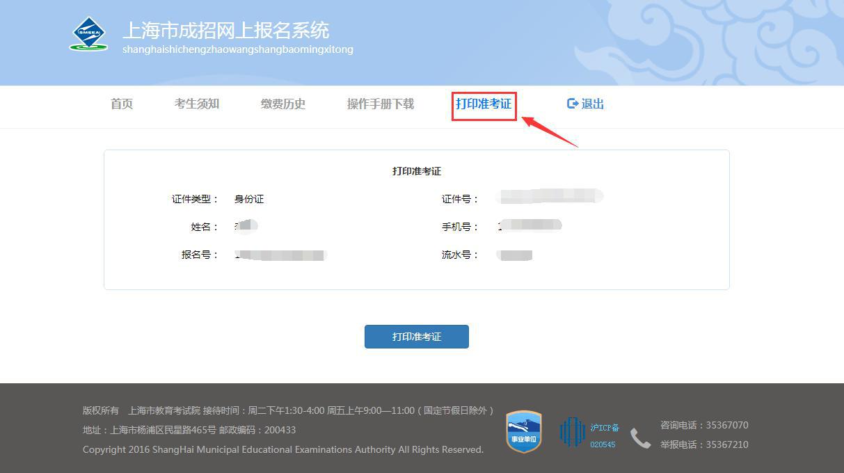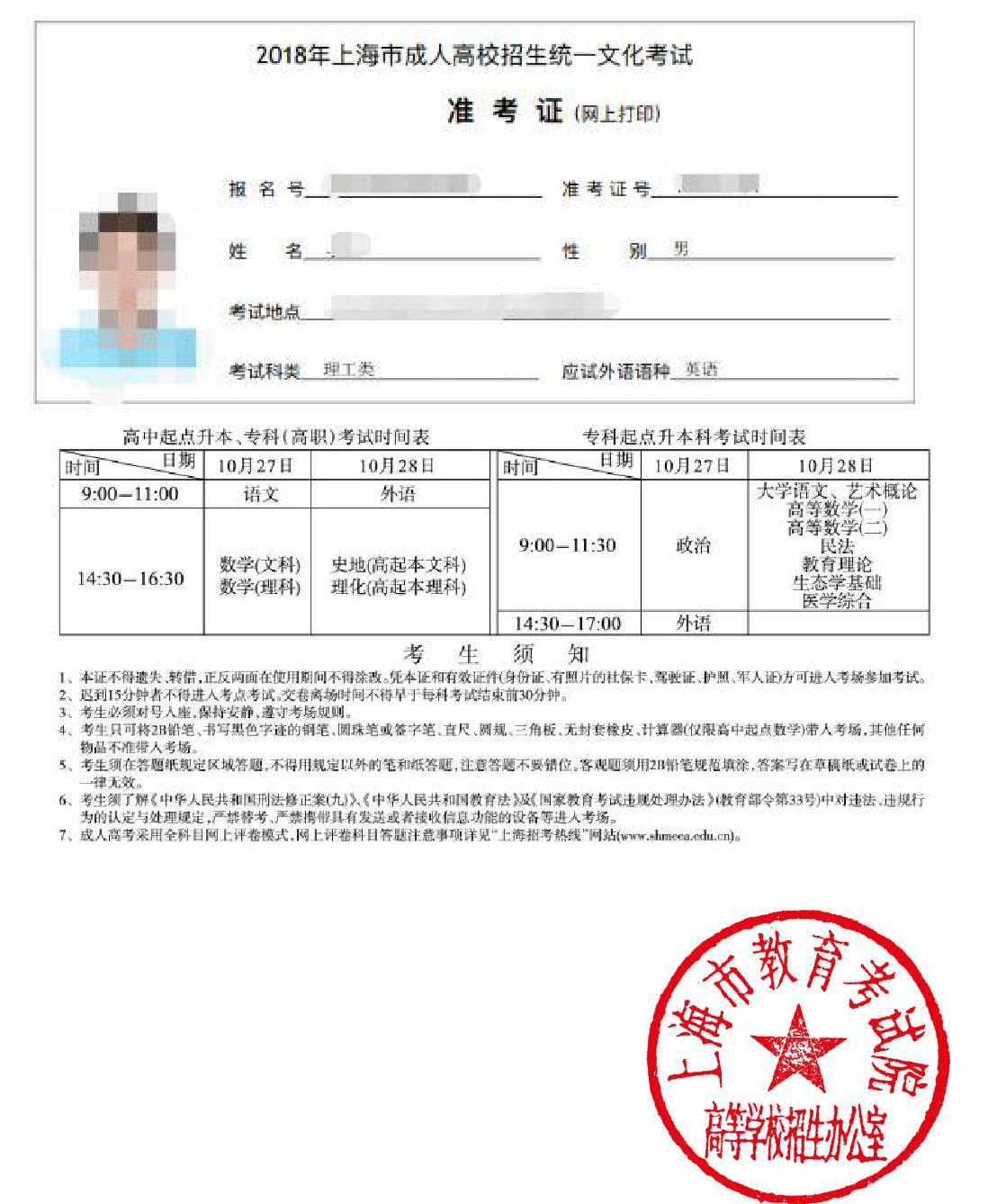 关于2018 年上海市成人高考考生入场证件携带要求及准考证网上打印办法的通知