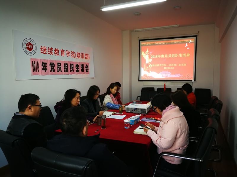 3月13日上午,继续教育学院(培训部)党支部在普陀校区召开2018年度党员组织生活会。会议由党支部书记程秀玲主持,全体党员及群众代表参加了会议。