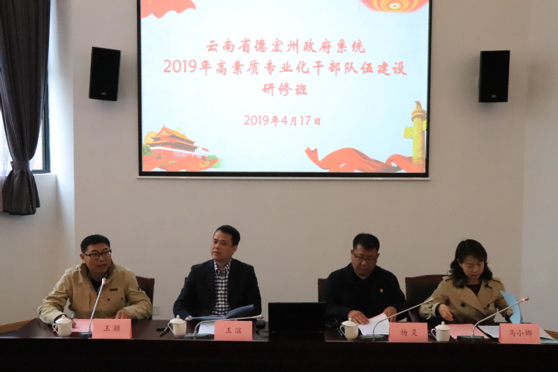 4月17日上午,云南省德宏州政府系统2019年高素质专业化干部队伍建设研修班和云南省德宏州2019年扶贫干部能力素质提升培训班在我校顺利开班。青浦区人民政府办公室副主任王滨,德宏州政府副秘书长、州政府办公室党组成员杨灵,德宏州扶贫干部培训班带队领导徐祖林,新利18官方客服继续教育学院院长马小娜分别出席了开班仪式。开班仪式由培训班班主任佟小鹏主持。