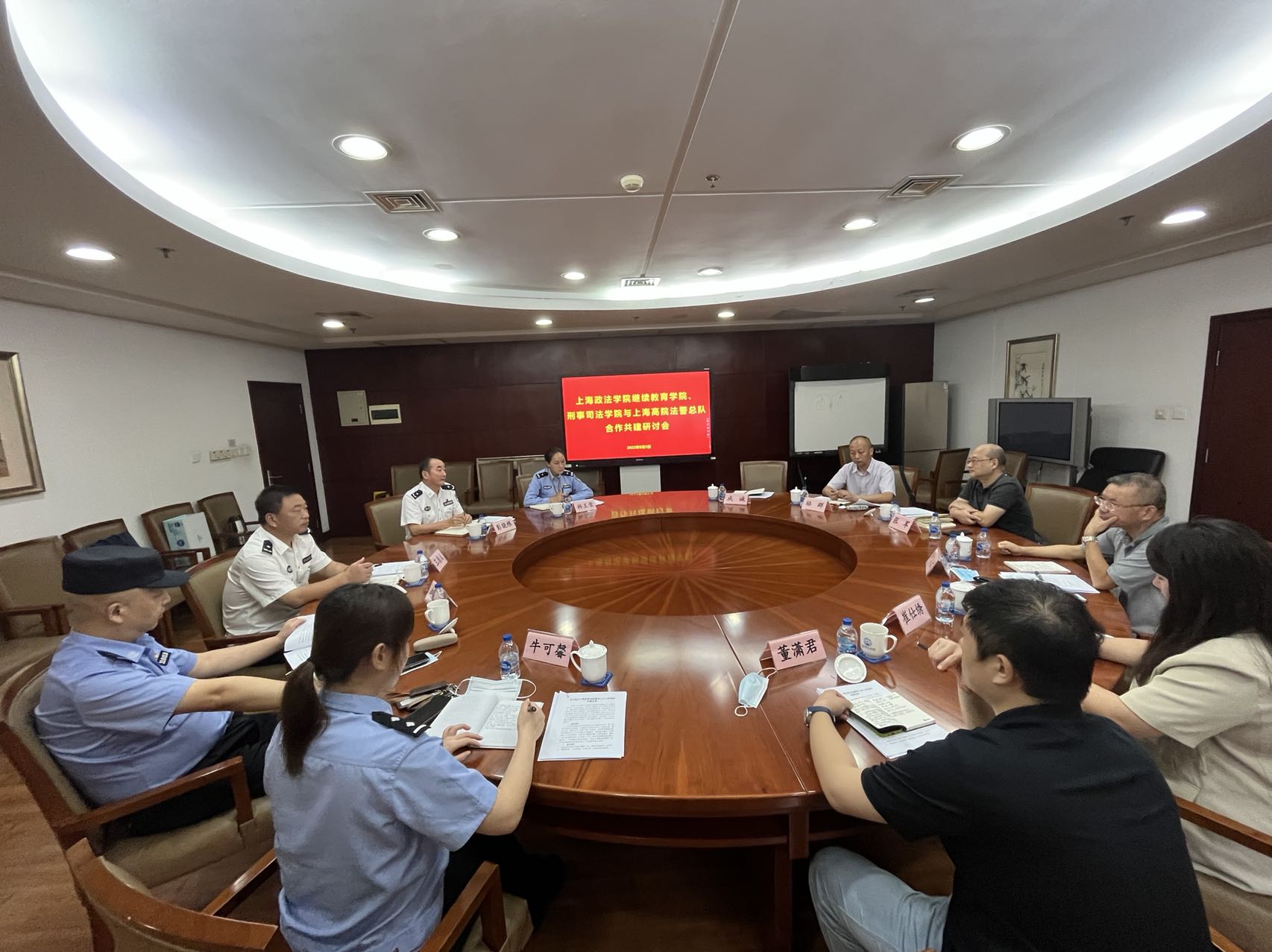 为认真贯彻落实上海高院与新利18官方客服签署的战略合作协议,加强院校深度合作,助力司法警察队伍建设,9月5日上午,继续教育学院院长张军与刑事司法学院副院长陈丽天、骆群、崔仕绣老师等一行共同前往上海市高级人民法院法警总队(以下简称“法警总队”),就我校与法警总队探索深化司法警察教育培训合作等内容开展研讨。法警总队总队长王德成、政委彭晓根及部分处室负责人出席。