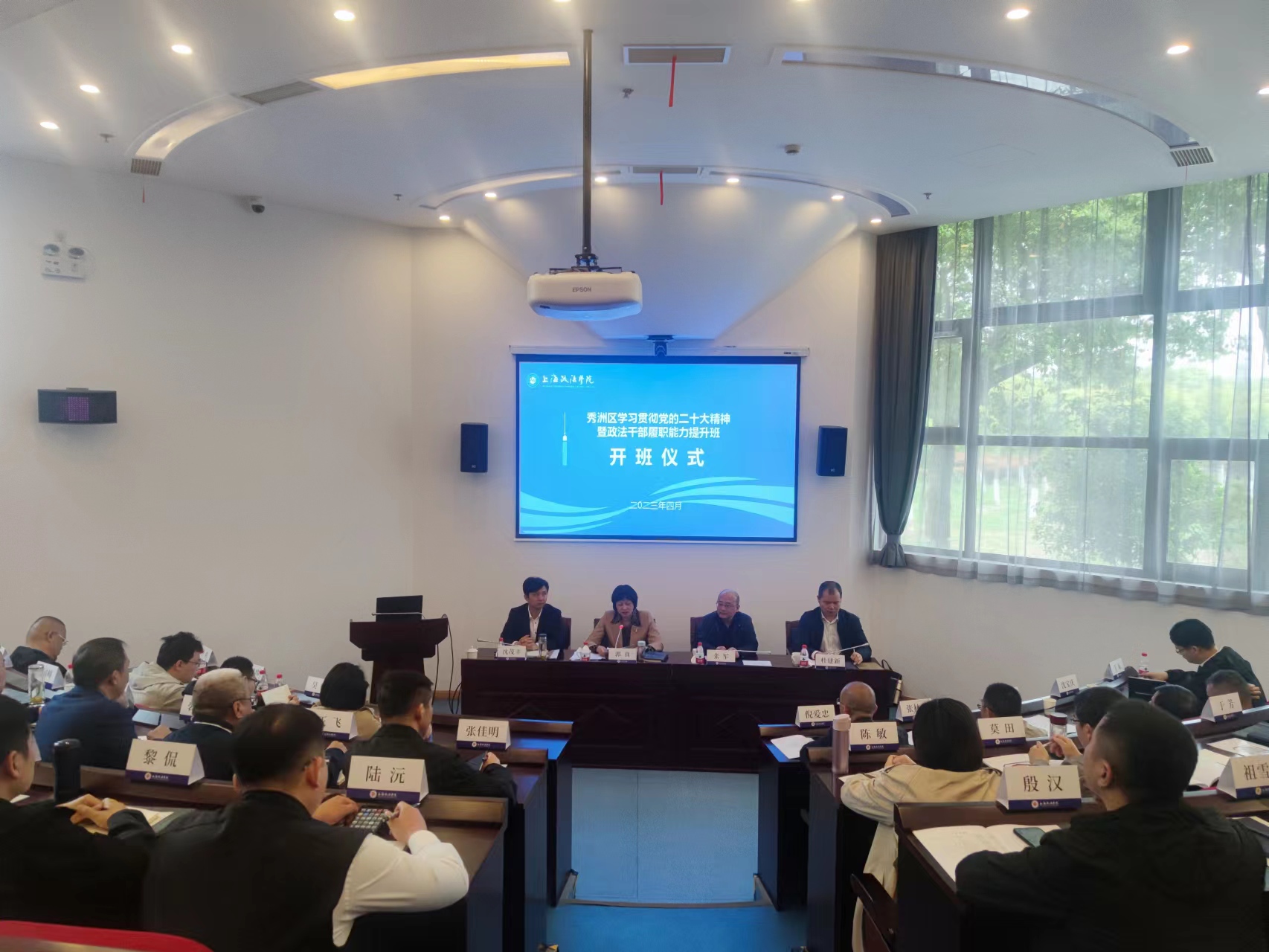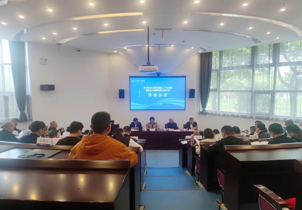 4月23日,浙江省嘉兴市秀洲区学习贯彻党的二十大精神暨政法干部履职能力提升班在我校上合基地开班,来自秀洲区政法委的40余名干部参加此次培训。