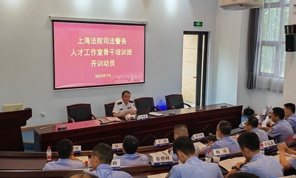 上海市高级人民法院司法警察总队政委彭晓根作开班动员,指出要充分发挥人才骨干作用,瞄准打造在全国具有领先水平和广泛影响力的领军警务人才队伍的目标,加强司法警察队伍革命化、正规化、专业化、职业化建设,提升司法警察队伍专业能力和业务水平。
