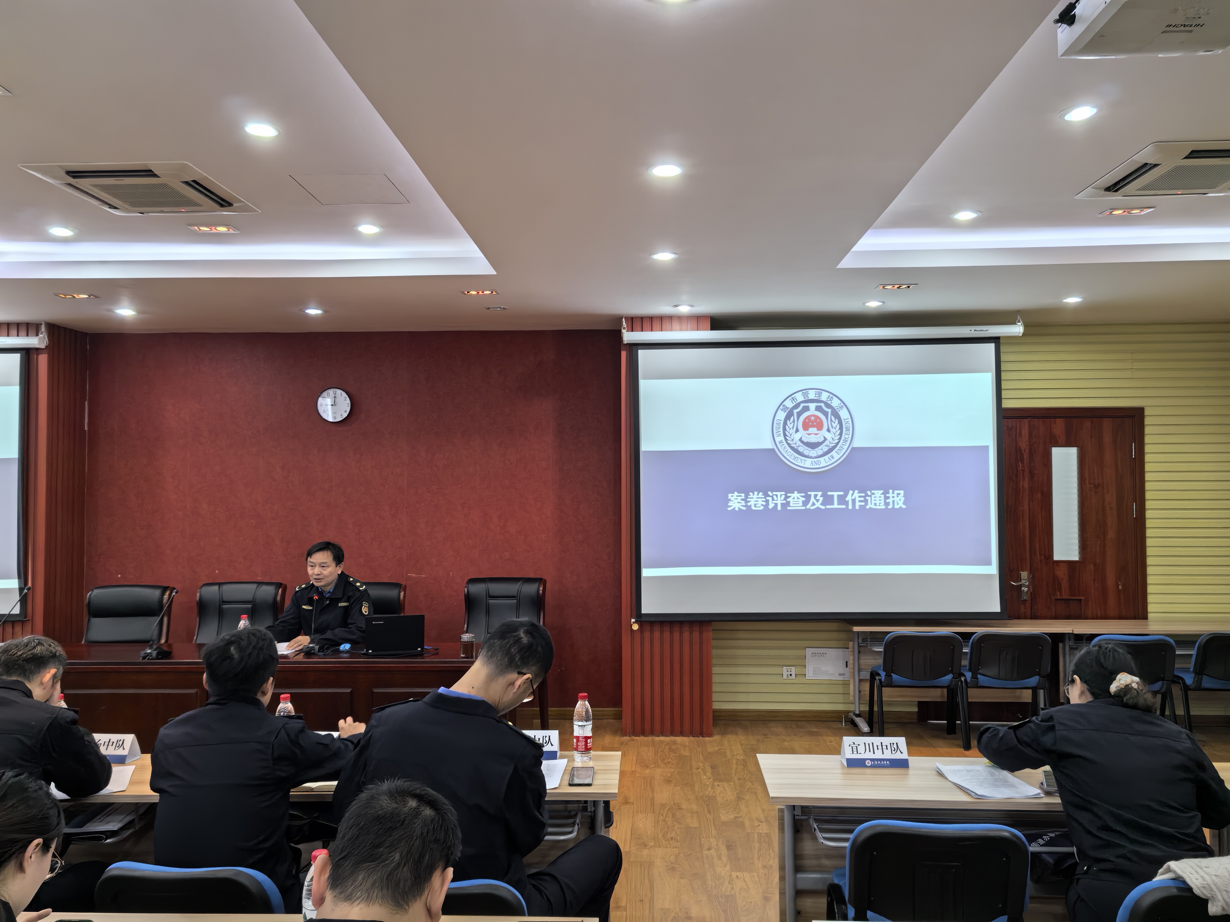 区局案件审理科负责人张亮以5个案例为蓝本,以问题为导向,开展一季度案卷质量讲评。