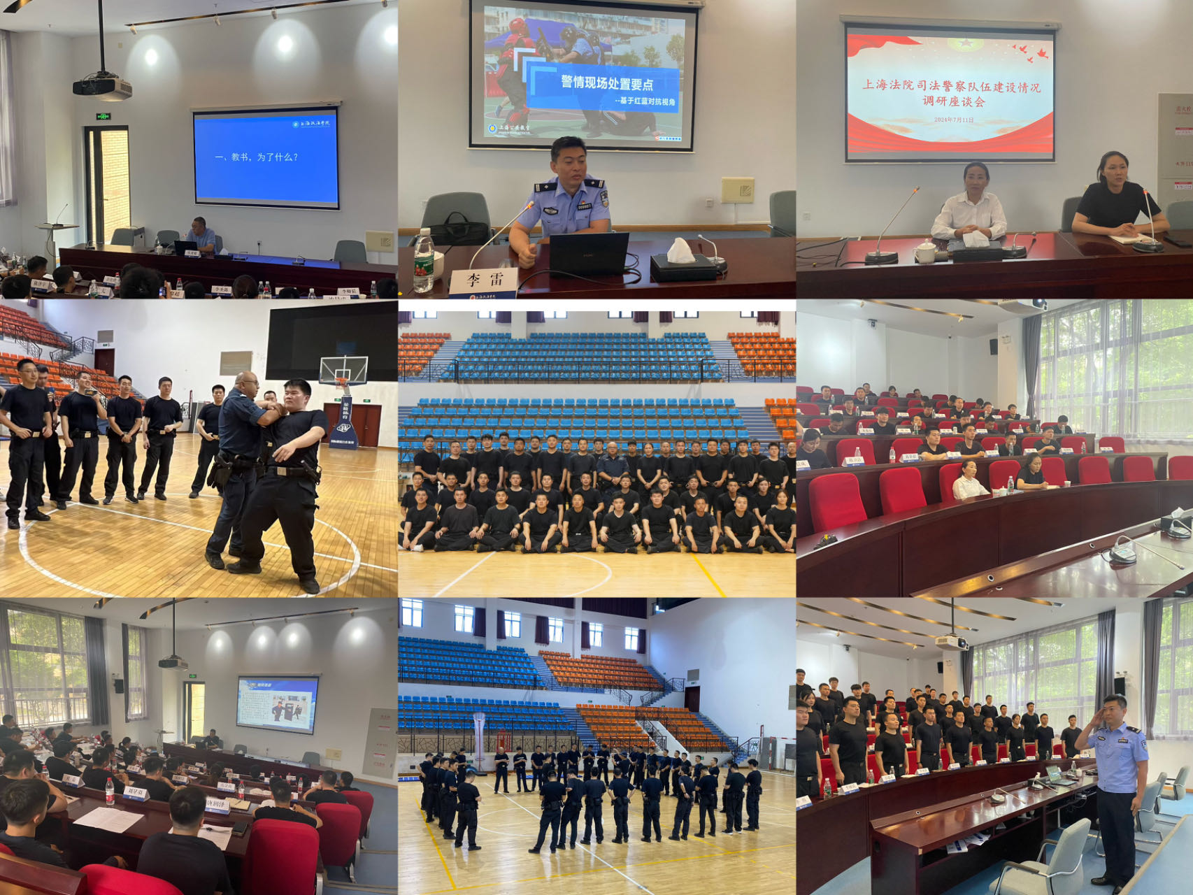 为提高上海市法院司法警察实战化训练水平,全面加强教练员队伍规范化建设,提升警务实战教练员教学技能和教学质量,7月8日-12日,上海法院司法警察警务实战教练员培训班在我校举办,来自全市三级法院司法警察部门的五十余名学员参加本次培训。