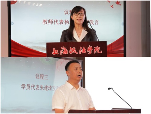 教师代表杨玲丽教授、学员代表朱建琦分别作交流发言。