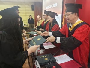 典礼上,与会领导和教师代表为毕业生代表颁发毕业证书,为优秀毕业生颁发荣誉证书,并为获得学位的毕业生正冠拨穗,完成学位授予仪式。