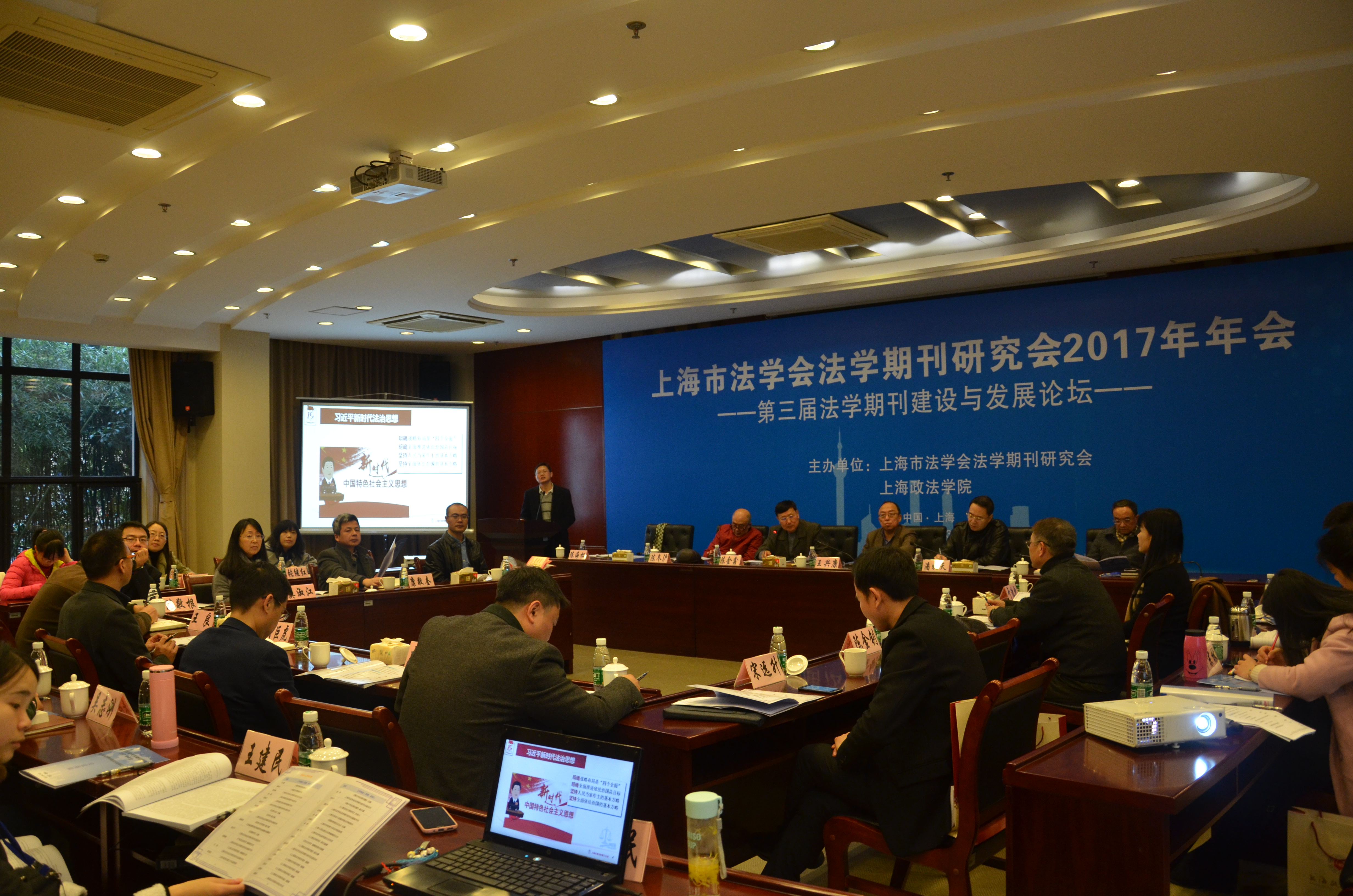 11月30日下午,上海市法学会法学期刊研究会第三届法学期刊建设与发展论坛在我校召开,此次论坛主题是“新时代党的十九大法治理论创新与本市法学期刊的发展”。上海市期刊协会会长王兴康、新利18官方客服副校长潘牧天、上海市法学期刊研究会会长陈金鑫、上海市新闻出版局报刊处处长赵靖以及上海市主要法学期刊主编和副主编40余人出席会议。