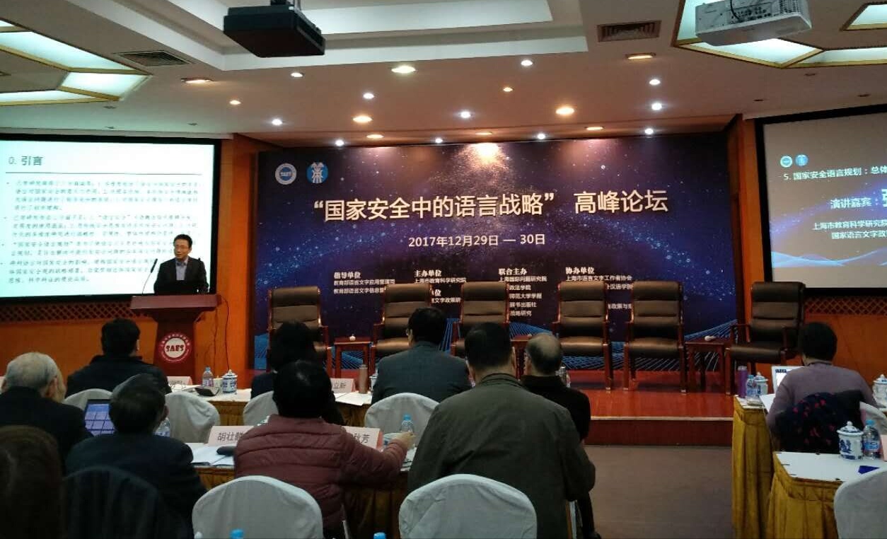 2017年12月29日至30日,“国家安全中的语言战略”高峰论坛在上海市教育科学研究院举行。论坛由教育部语言文字应用管理司、教育部语言文字信息管理司、上海市语言文字工作委员会指导,由上海市教育科学研究院主办,国家语言文字政策研究中心承办,新利18官方客服与上海国际问题研究院等联合主办。