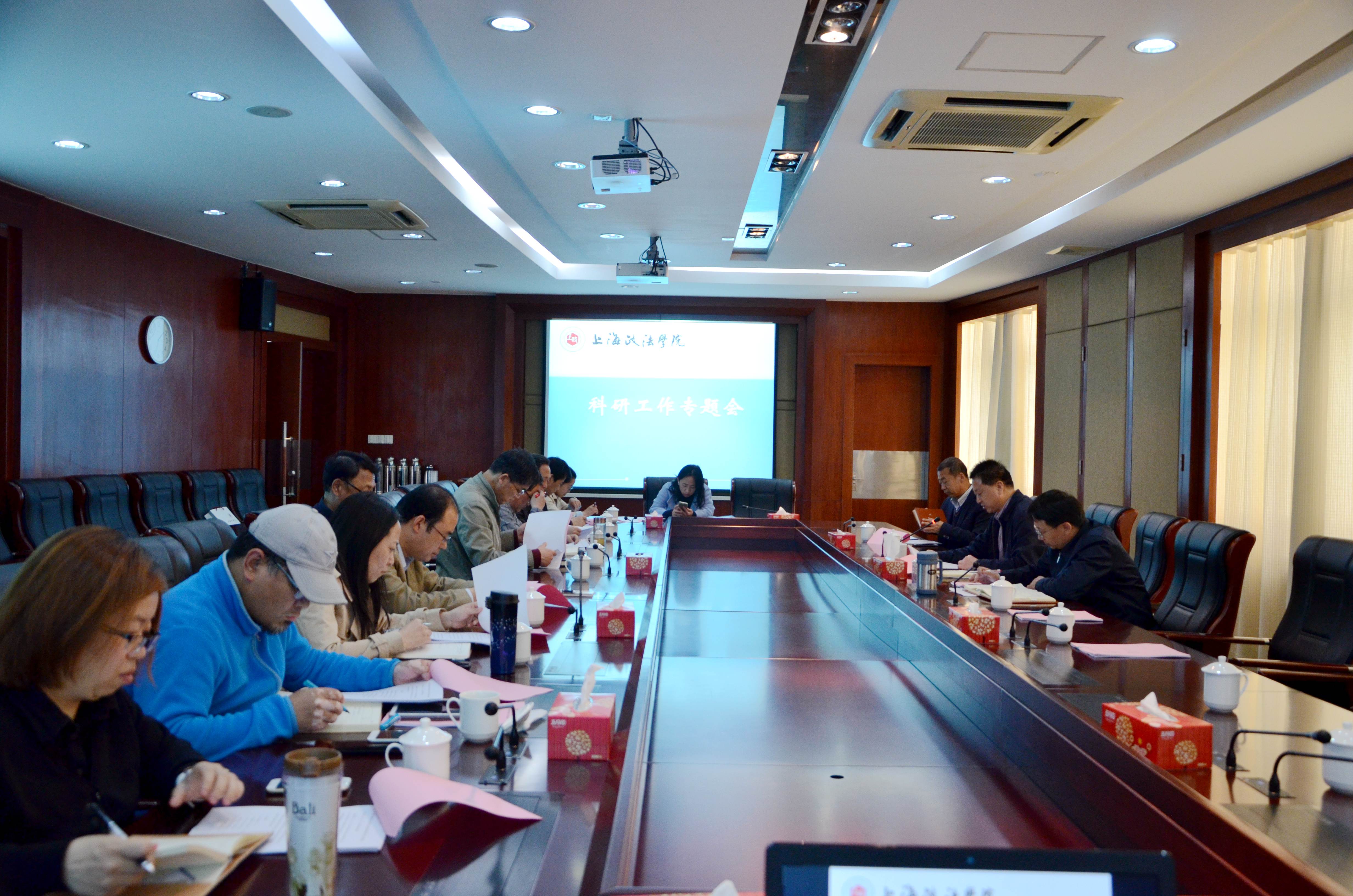 科研处处长张远新就近期科研工作进行了通报和布置,主要对组织上海市第十四届哲学社会科学优秀成果评奖申报、推荐“上海青年法学法律人才”、开展新利18官方客服“名家讲坛”活动、申报2018年度上海市人民政府决策咨询研究重点课题等工作进行了详细解读并有针对性的做好了工作安排。除此之外张远新处长还就2018年度国家社科基金项目和教育部项目申报情况、学校科研骨干梳理情况进行了通报,并对学术活动月开展方案进行了征求意见。