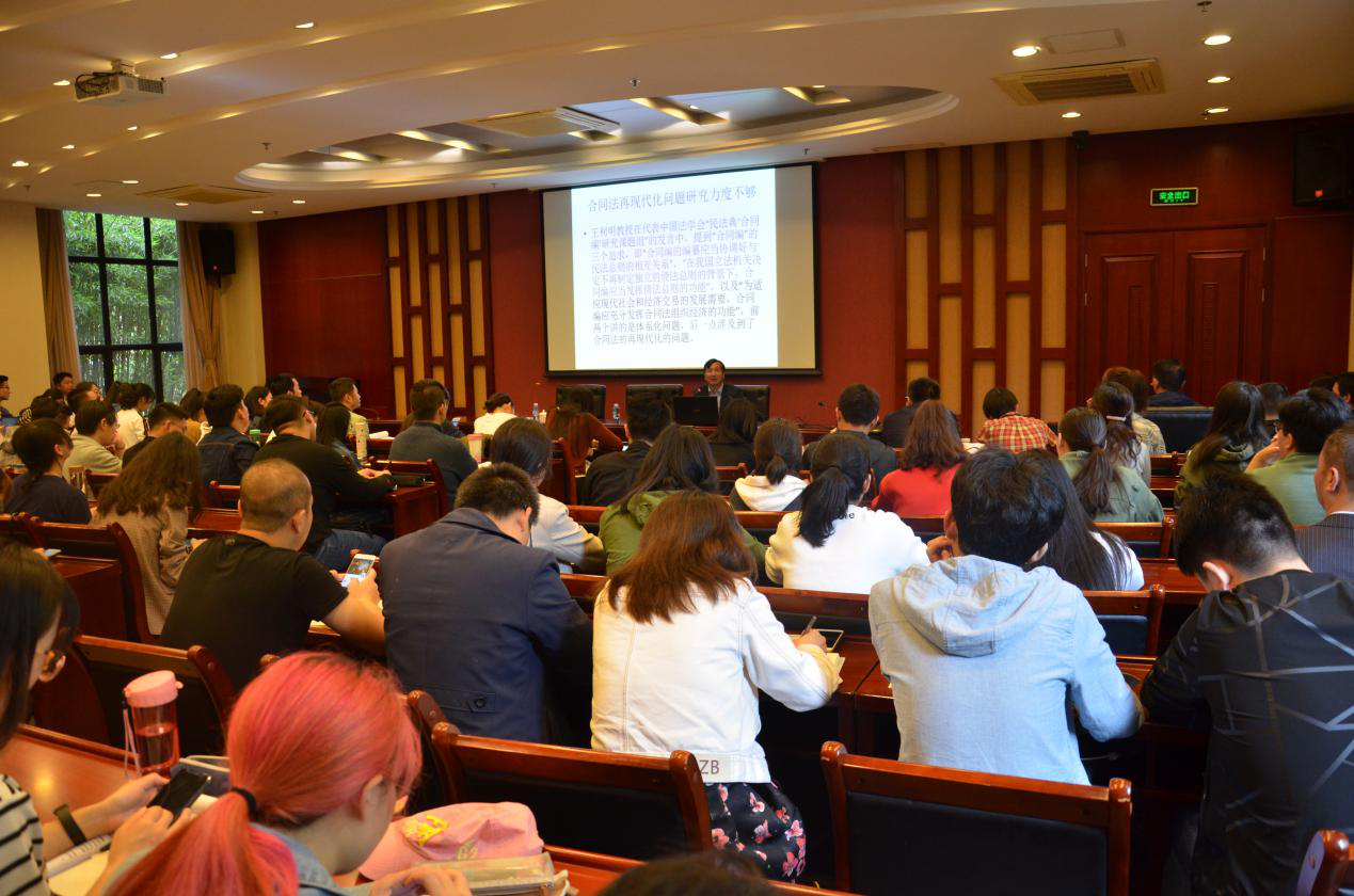 4月23日上午,北京航空航天大学法学院龙卫球教授应邀莅临我校“名家讲坛”,在综合研究中心107室为我校师生作题为“民法典合同编的进度和重要突破”的讲座,百余名师生到场聆听了讲座。