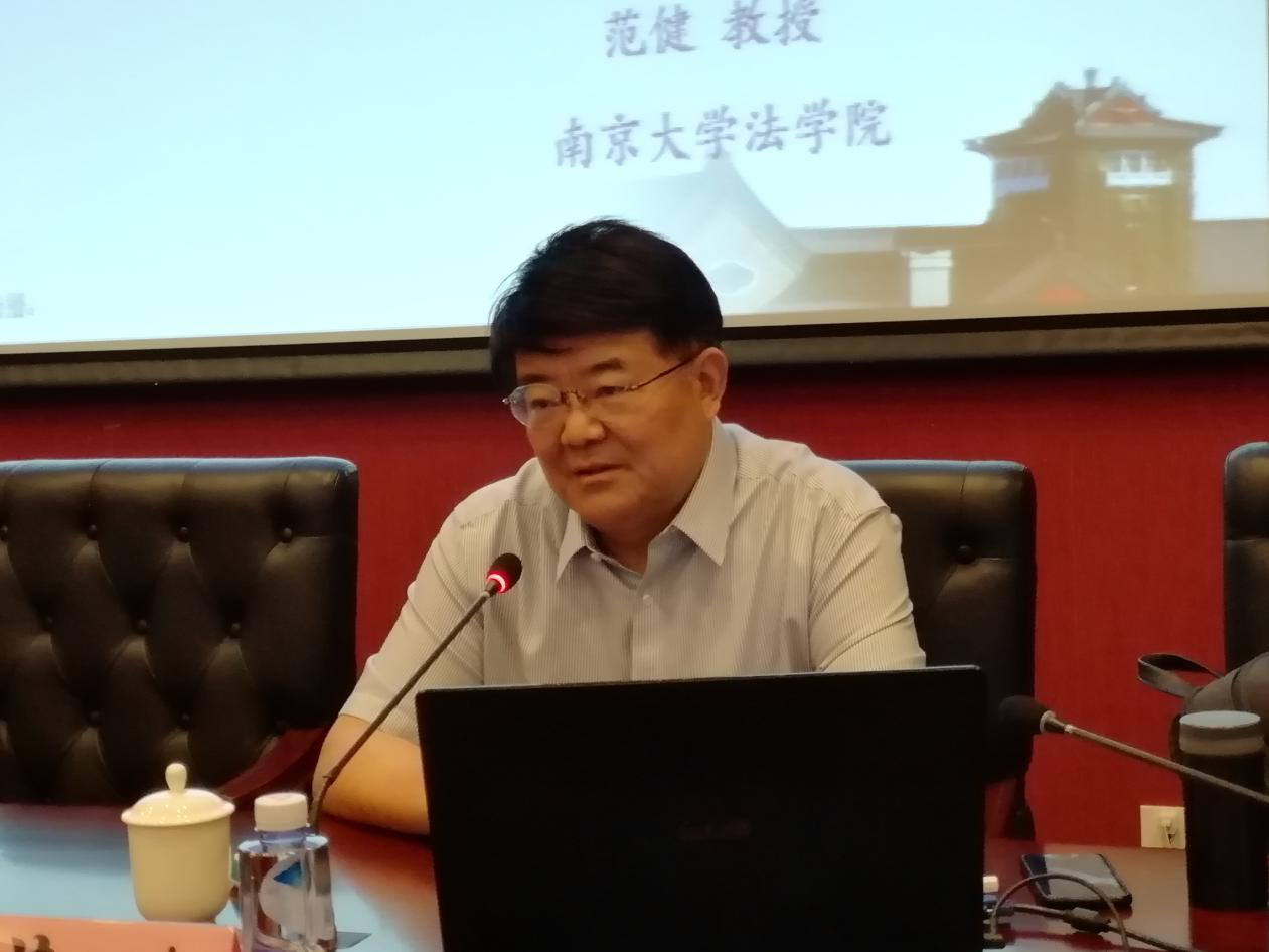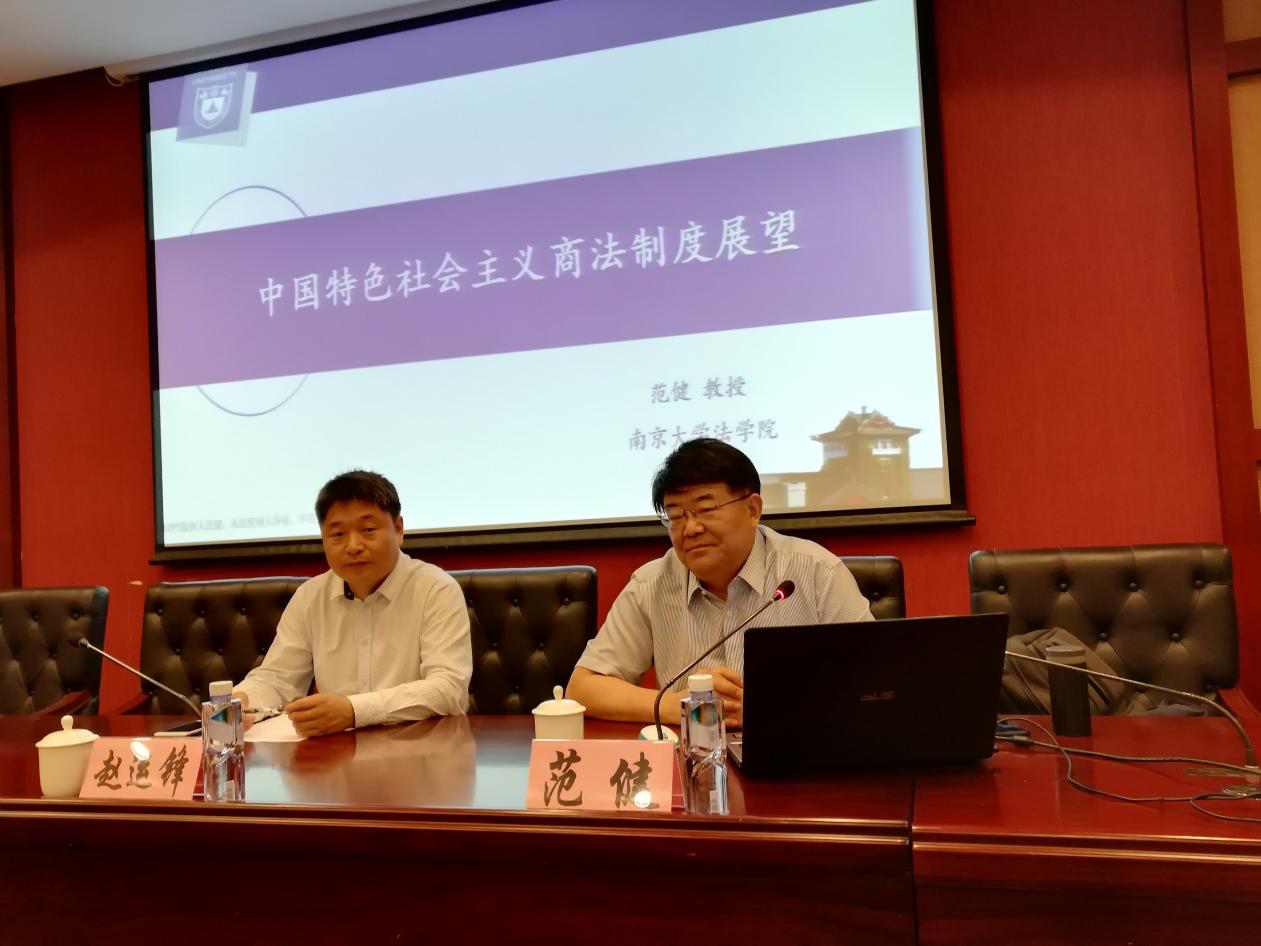 2019年5月15日下午,南京大学法学院范健教授做客我校名家讲坛,在综合研究中心107会议室作题为中国特色社会主义商法制度展望的专题讲座。讲座由科研处副处长赵运锋教授主持。