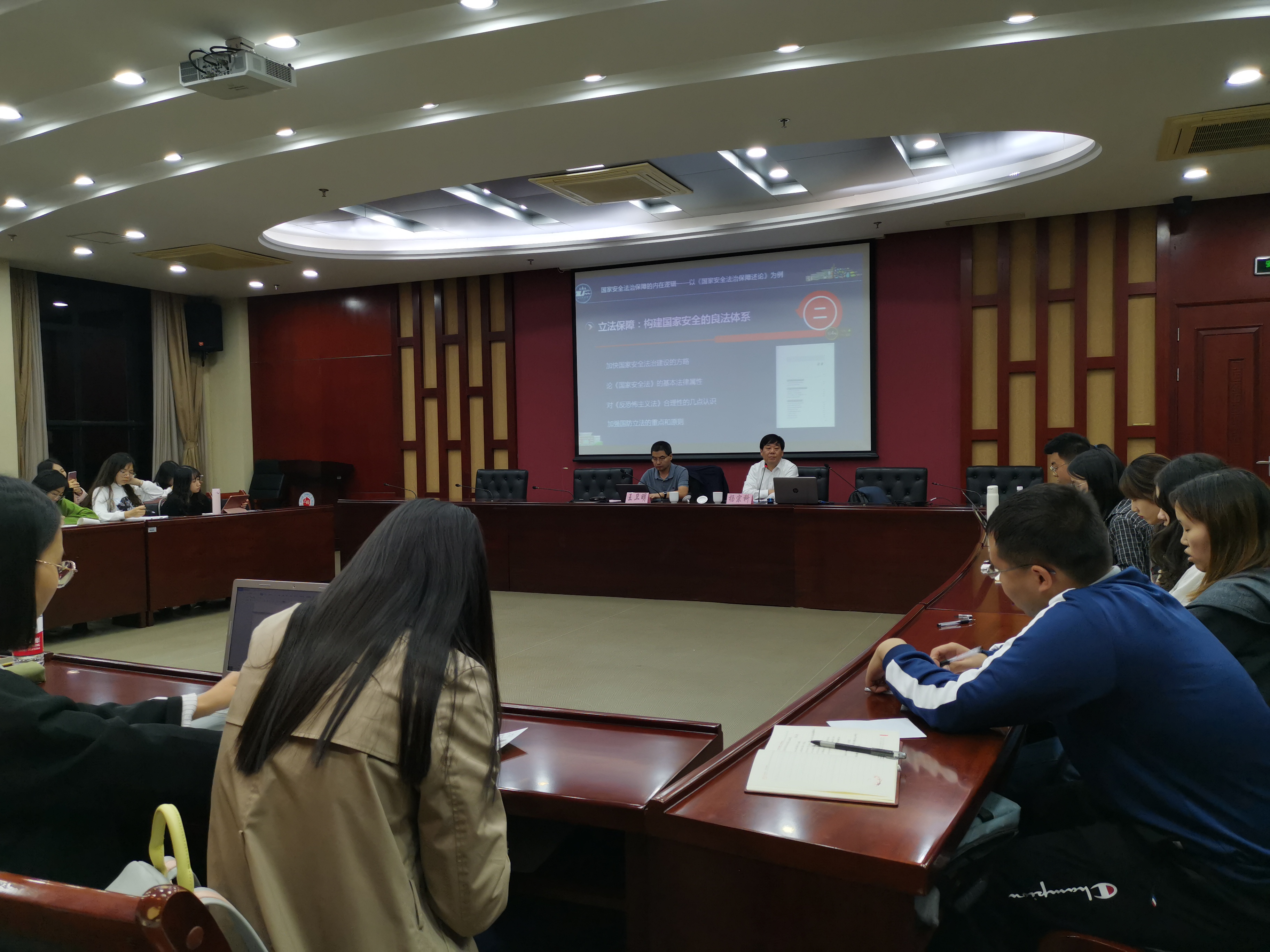 11月1日下午7点,我校邀请西北政法大学校长杨宗科教授,于综合研究中心107会议室开展主题为“加强国家安全法治保障的几点思考”的学术讲座,本次讲座由我校王卫明副教授主持,六十余名在校研究生参与学习讲座内容。