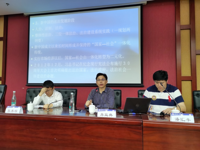 2021年6月3日晚,我校前沿讲坛第三十一讲在综合研究中心107会议室举行。华东政法大学社会发展学院院长易益典教授莅临我校,为师生作“法治社会建设的规范结构和行动逻辑”学术讲座。我校张善根副教授参与与谈,新利18官方客服科研处副处长(挂职)潘汇丰作为讲座主持人,百余名师生参与本次讲座。