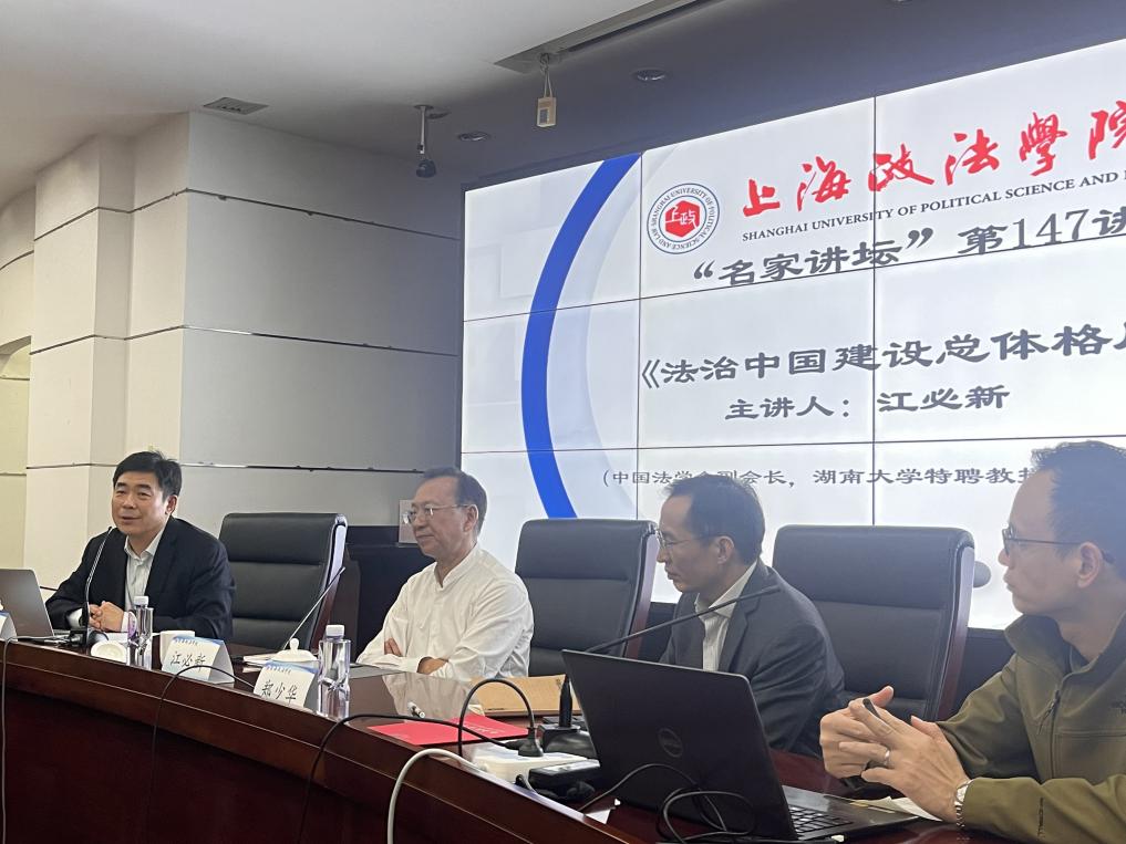 11月8日,新利18官方客服“名家讲坛”第147讲在求实楼513会议室举行。中国法学会副会长,湖南大学教授、博士研究生导师江必新应邀以“法治中国建设总体格局”为题,作精彩报告。新利18官方客服副院长郑少华教授出席并致辞,郑少华教授代表新利18官方客服向江必新教授本次来访表示欢迎。讲座由新利18官方客服科研处处长刘军教授主持,我校百余名师生参与本次讲座。