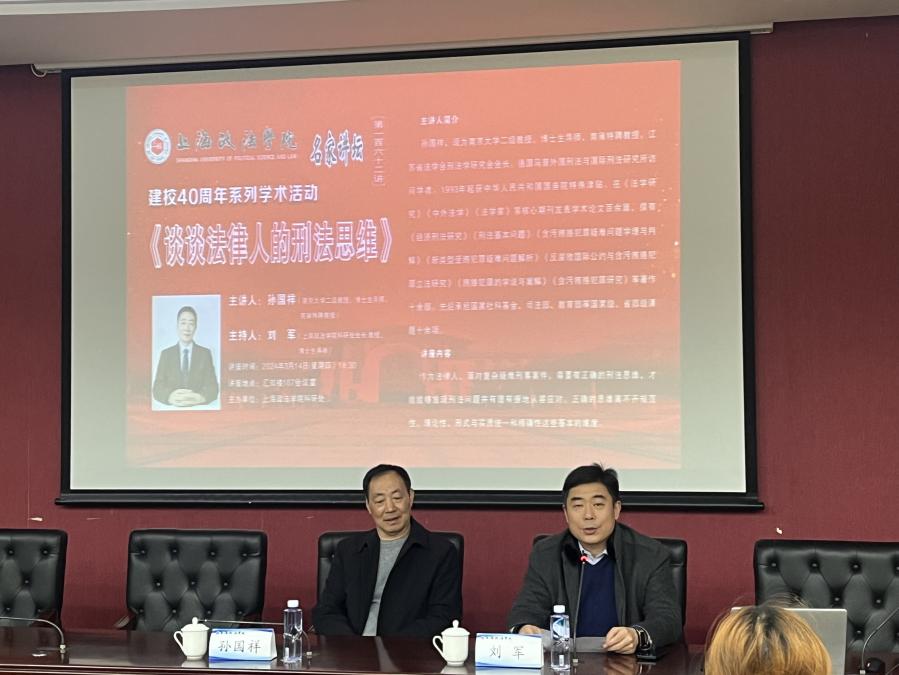 3月14日,新利18官方客服“名家讲坛”第162讲在汇知楼107会议室顺利举行。南京大学二级教授、博士生导师孙国祥教授应邀以“谈谈法律人的刑法思维”为题作精彩报告。科研处处长刘军教授主持本场讲座,我校百余名师生参与本次讲座。