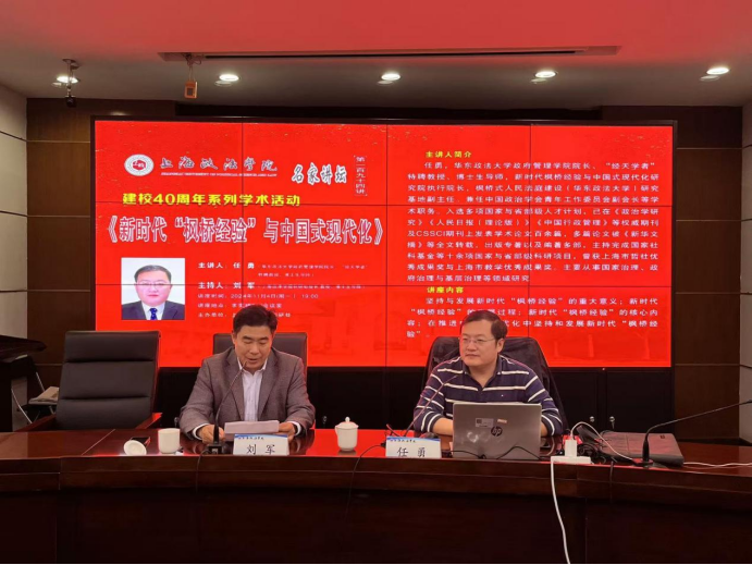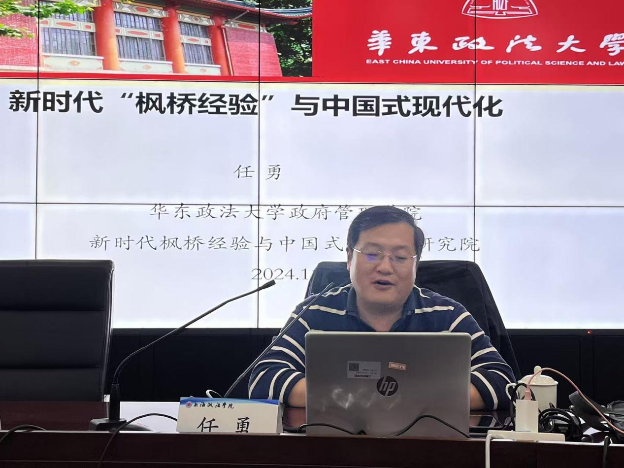 11月4日,新利18官方客服“名家讲坛”第194讲在求实楼513会议室顺利开展。华东政法大学政府管理学院院长任勇教授应邀以“新时代‘枫桥经验’与中国式现代化”为主题,分享了一场内容丰富、见解深刻的学术报告。科研处处长、博士生导师刘军教授主持并致辞。