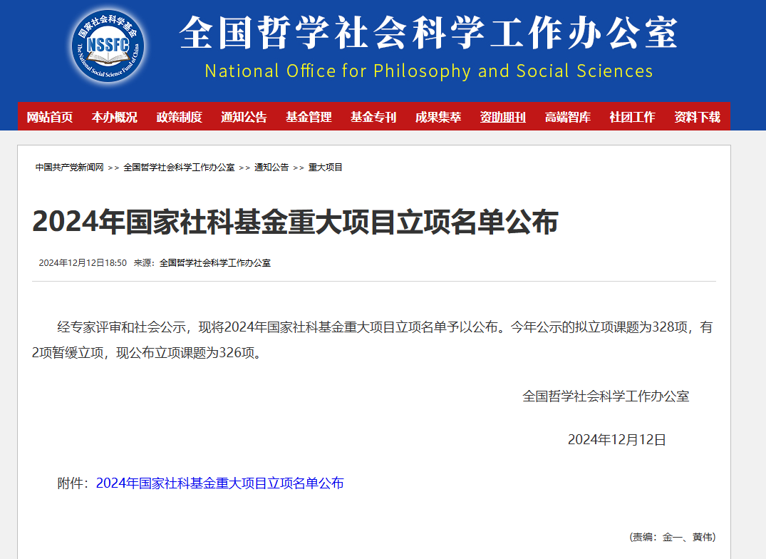 近日,全国哲学社会科学工作办公室公布了2024年度国家社科基金重大项目立项名单,我校杨华教授担任首席专家申报的项目《我国周边海洋安全和涉海维权的法律问题研究》获批立项。